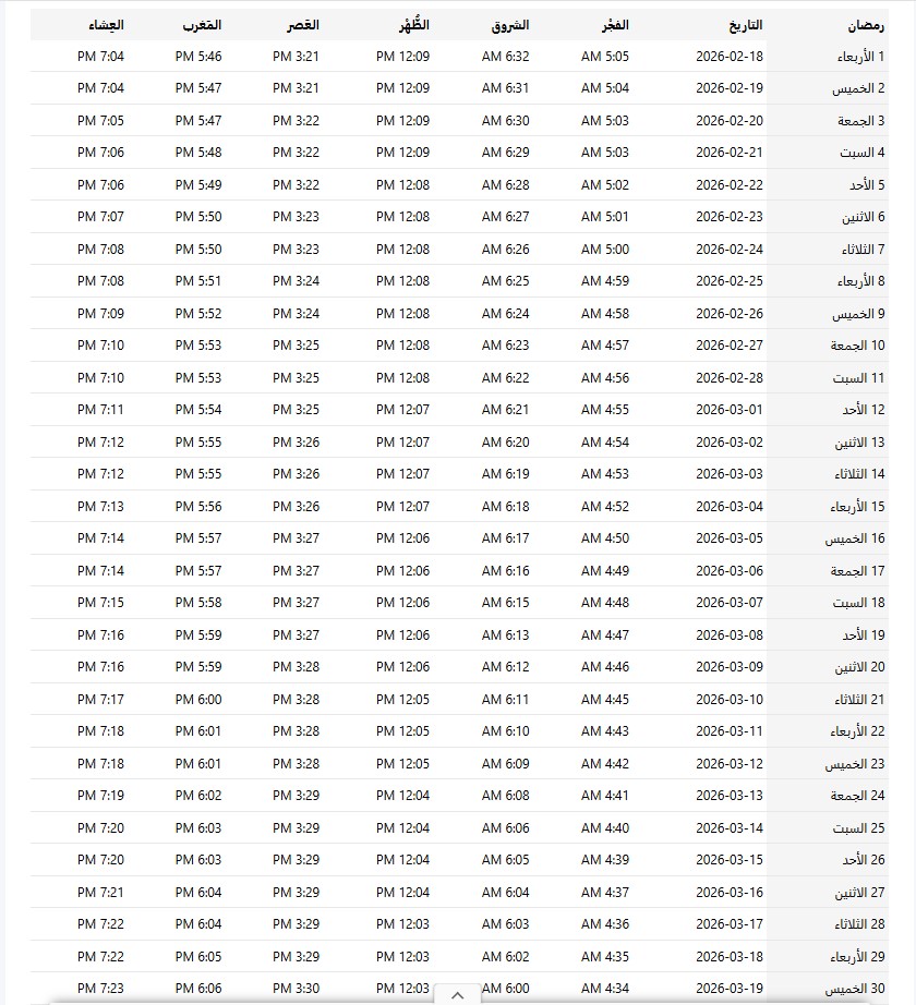 تتيح إمساكية رمضان 2026 معرفة مواعيد الإمساك والإفطار والصلوات الخمس بدقة طوال الشهر؛ ومما يلي نستعرض لكم امساكية رمضان الجديدة يمكنك تحميلها أو طباعتها والاحتفاظ بها علي جهازك:-