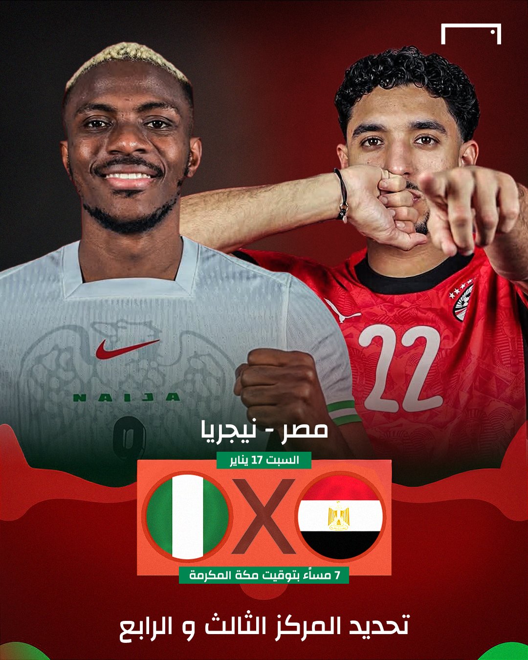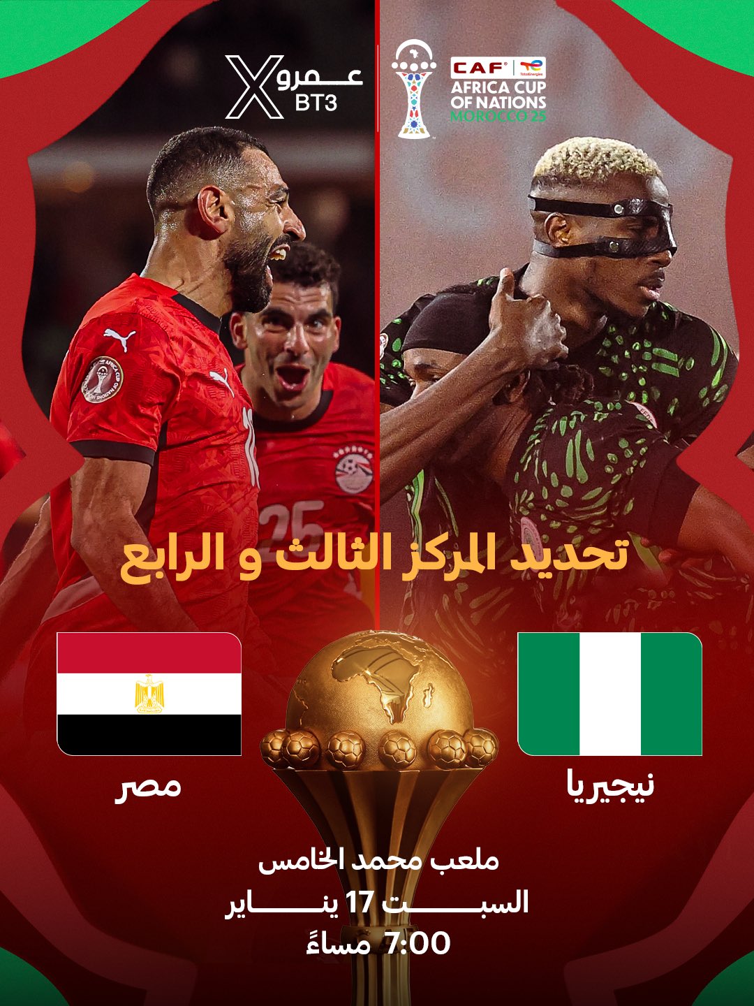 تقام مباراة مصر ونيجيريا يوم السبت المقبل في تمام الساعة السادسة مساءً بتوقيت القاهرة، ويحتضن ملعب محمد الخامس بمدينة الدار البيضاء أحداث اللقاء، وهو أحد أبرز الملاعب الإفريقية التي شهدت العديد من المواجهات القوية خلال البطولة الحالية، وسط توقعات بحضور جماهيري كبير ومتابعة إعلامية واسعة.