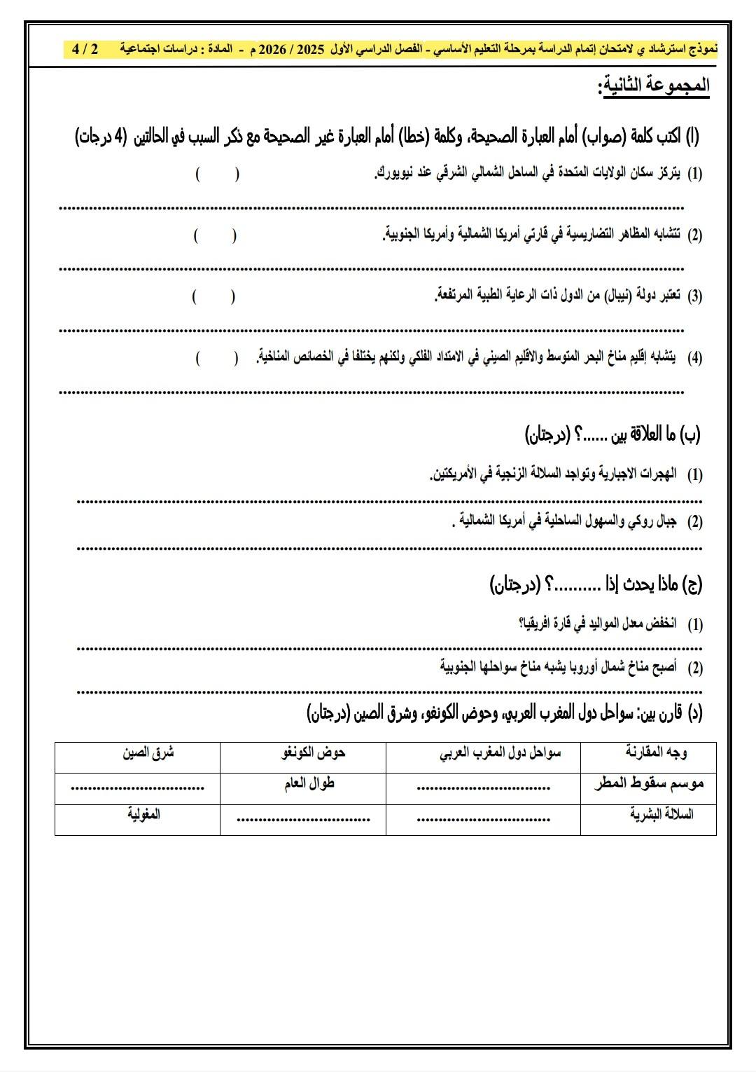 - الخميس 22 يناير 2026: مادة الدراسات الاجتماعية.