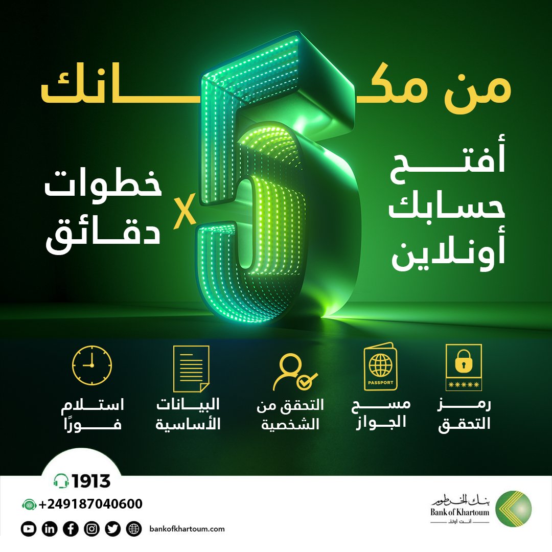 أعاد بنك الخرطوم تفعيل خدمة فتح الحسابات البنكية عبر الإنترنت بشكل كامل، في خطوة مهمة تهدف إلى تسهيل الإجراءات المصرفية أمام العملاء داخل السودان وخارجه، حيث أصبح بإمكان أي مواطن فتح حساب بنكي دون الحاجة إلى التوجه إلى أي فرع، مما يوفر الوقت والجهد ويواكب التطور الرقمي في القطاع المصرفي.